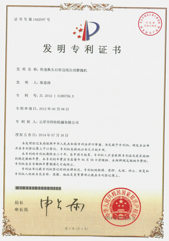 企業(yè)組建了“云浮市石材機(jī)械裝備工程技術(shù)研究開發(fā)中心”,并與高校和科研院所密切合作,致力于光機(jī)電一體化產(chǎn)品的研發(fā)、生產(chǎn)、銷售和服務(wù)。主要產(chǎn)品有框架鋸、全自動(dòng)連續(xù)磨拋機(jī)、橋式自動(dòng)切割機(jī)、全自動(dòng)仿形石線機(jī)、數(shù)控金剛石繩鋸、裁切機(jī)等。產(chǎn)品具有自動(dòng)化程度高、加工精度高和生產(chǎn)效率高等特點(diǎn)。產(chǎn)品除國(guó)內(nèi)銷售外,還出口到歐美、東南亞、韓國(guó)、印度、中東、非洲、俄羅斯、澳大利亞等國(guó)家和地區(qū),深受用戶好評(píng)!皹蚴阶詣(dòng)切割機(jī)”被認(rèn)定為廣東省高新技術(shù)產(chǎn)品,擁有發(fā)明專利1項(xiàng)、實(shí)用新型專利1項(xiàng)。